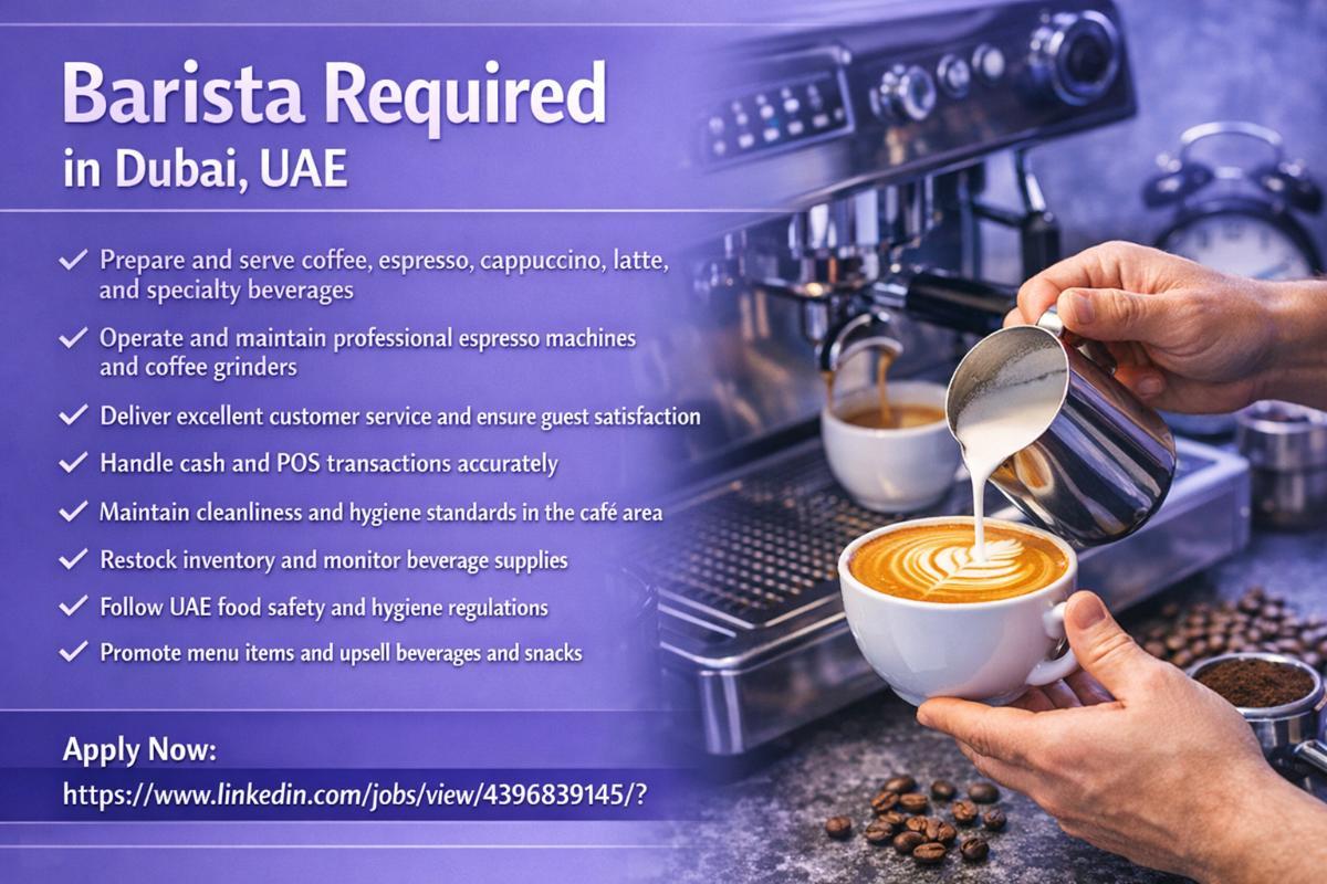 This opportunity is perfect for candidates searching for Barista jobs in Abu Dhabi, Coffee Shop Jobs UAE, Hospitality Staff Hiring, Café Barista Roles, or Restaurant Beverage Staff positions.
