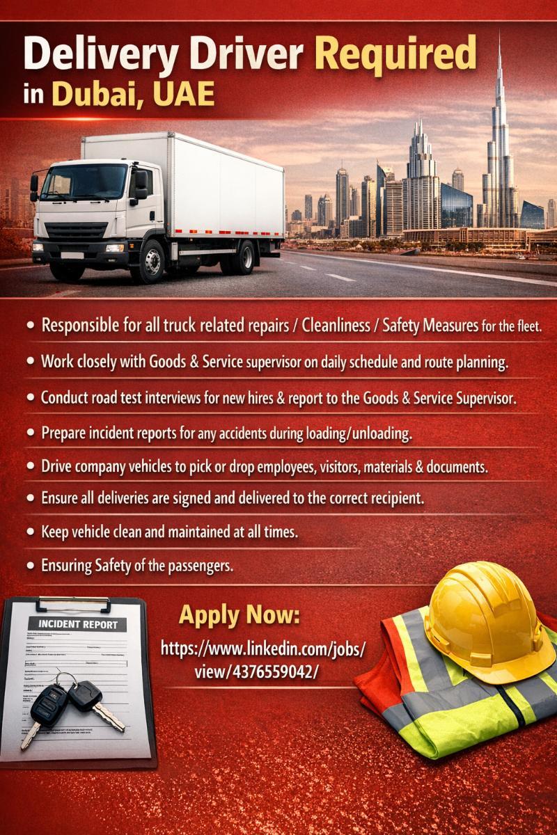 Delivery Driver Required in Dubai