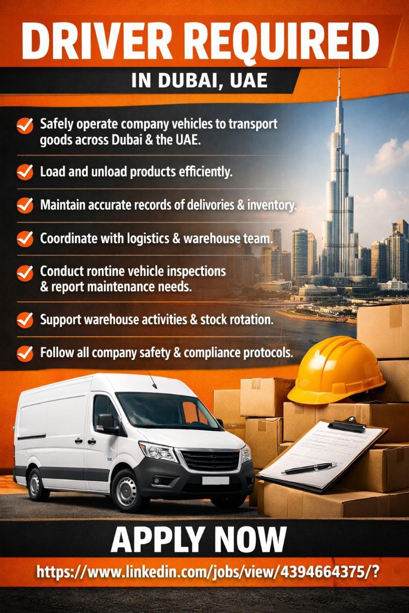 We are seeking a reliable and detail-oriented Driver to join our team in Dubai. This role plays a key part in supporting our transportation and warehouse operations, ensuring the smooth and timely movement of goods while maintaining warehouse efficiency.