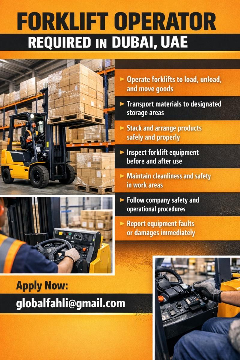 We are seeking a skilled and responsible Forklift Operator to handle material movement, loading, and storage operations safely and efficiently within warehouse and industrial environments.