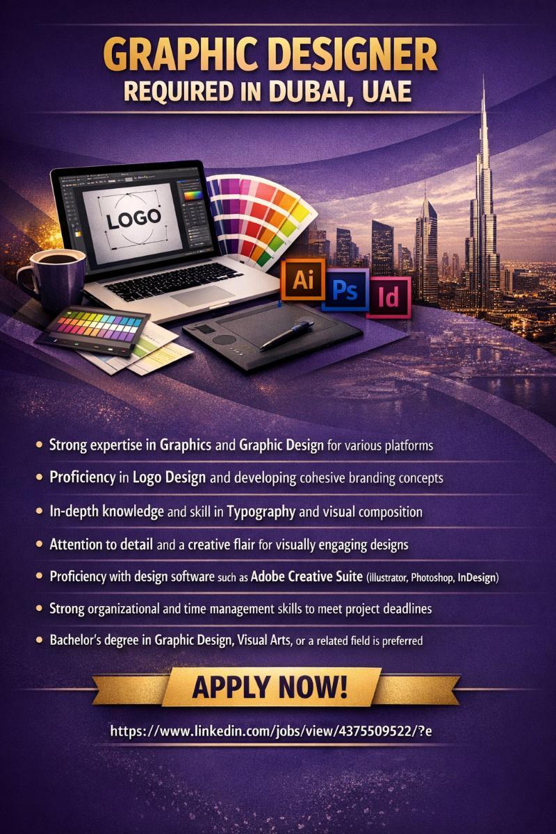 This is a full-time on-site role for a Graphic Designer focusing on print and exhibitions, based in Dubai. The Graphic Designer will be responsible for creating high-quality designs, visual content, and branding materials for events, exhibitions, and promotional campaigns. Key responsibilities include graphic design, logo creation, typography, and developing branding concepts. The candidate will also collaborate closely with other teams to ensure that all design elements align with the company's branding strategy and clients' needs.