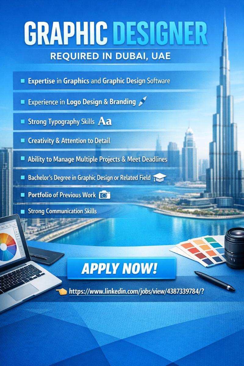 This is a full-time, on-site role for a Graphic Designer based in Dubai, United Arab Emirates. The Graphic Designer will be responsible for developing high-quality visual content, including graphic designs, logos, branding materials, and typography projects. Day-to-day tasks involve collaborating with clients and team members to understand project goals, creating visually appealing designs in alignment with brand guidelines, and staying up-to-date with industry trends to produce innovative work. Attention to detail, creativity, and time management efficiency are expected in this role.