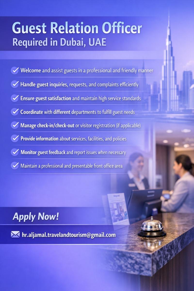 Guest Relation Officer Required in Dubai