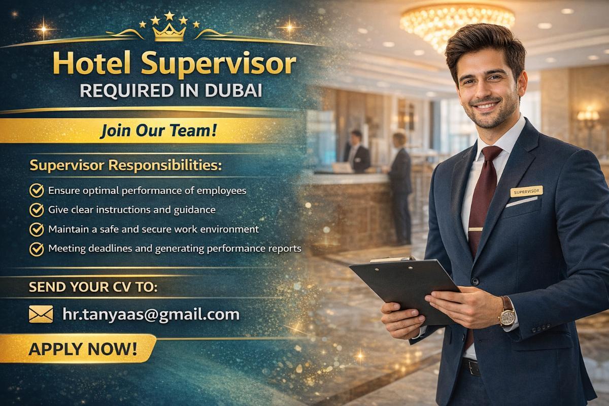 Hotel Supervisor Required in Dubai - Dubai