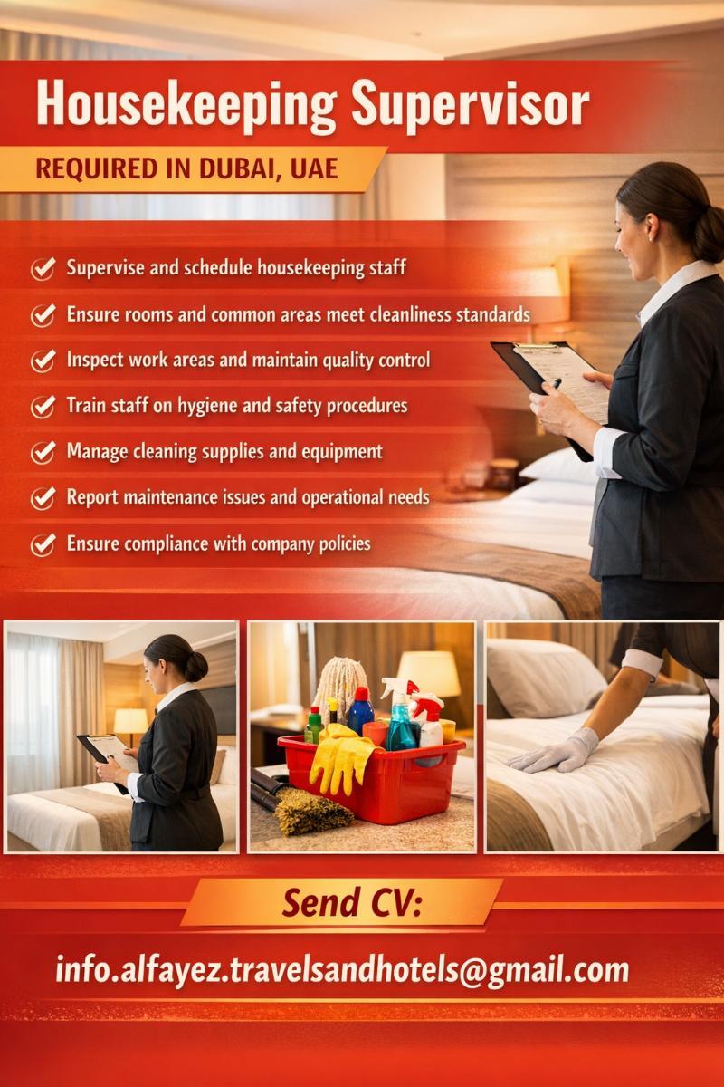 Housekeeping Supervisor Required in Dubai