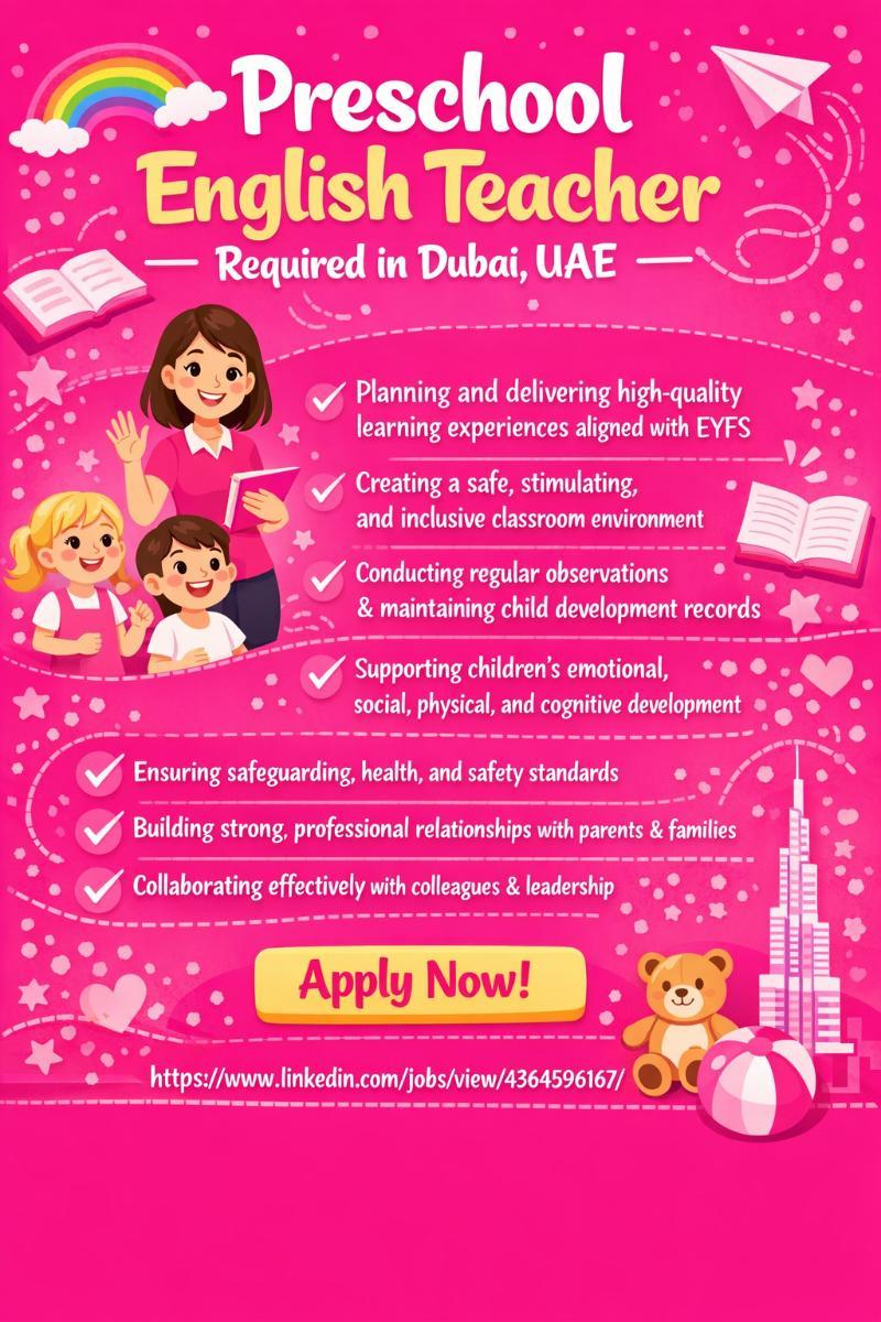 Preschool English Teacher Required in Dubai