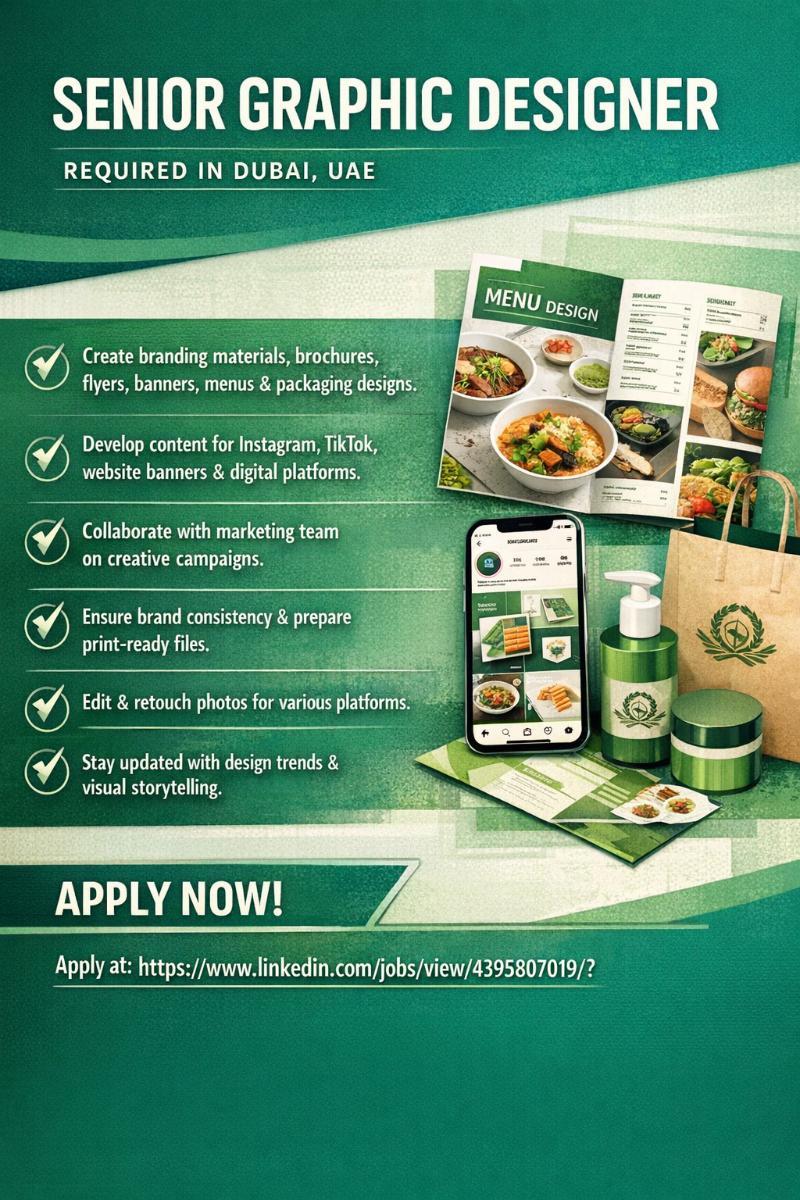 Senior Graphic Designer Required in Dubai - Dubai