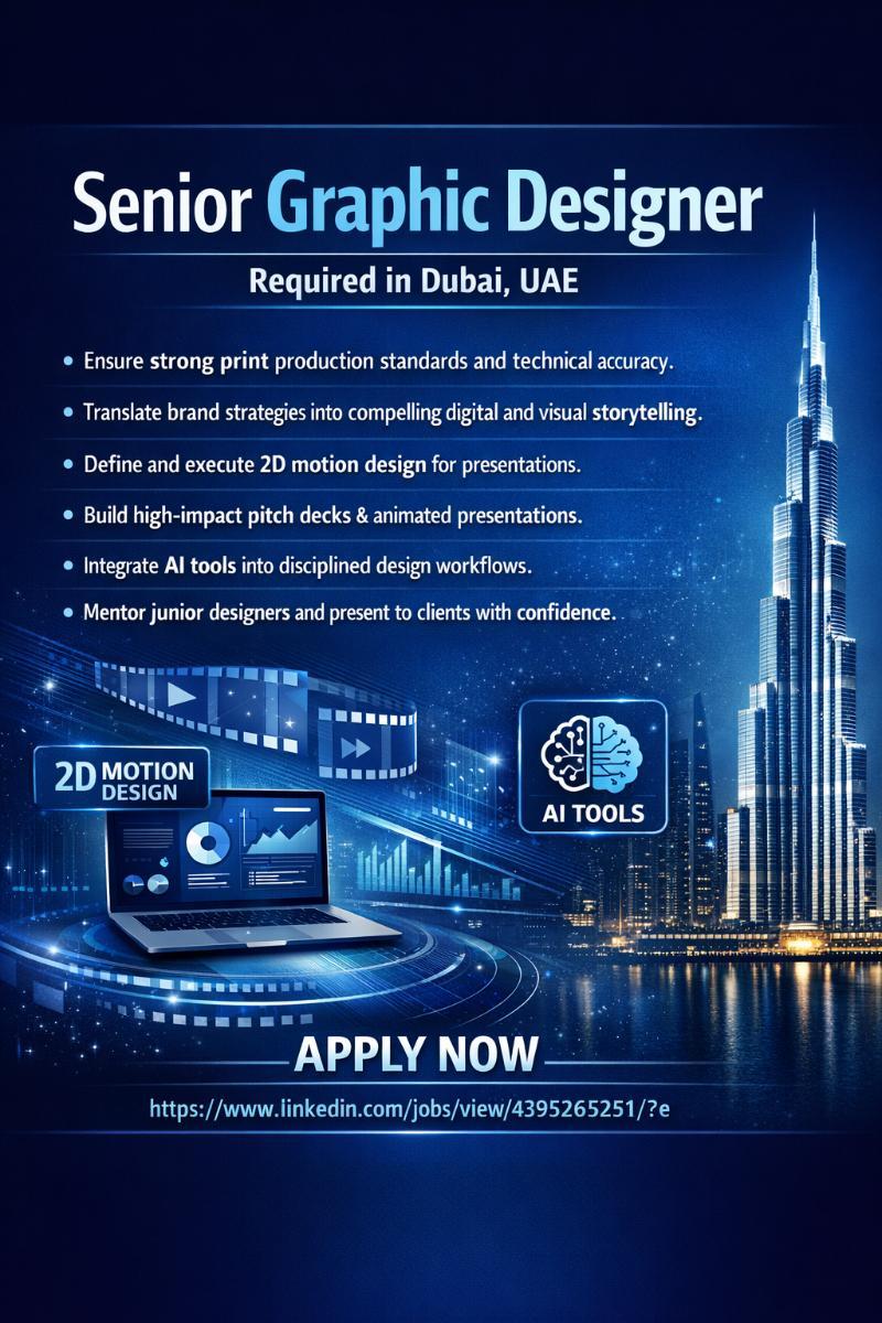 In this role, you will lead the development of complete identity systems — from concept to execution — across branding, editorial, packaging, and corporate communications. At the same time, you will help shape how brands evolve into digital ecosystems, motion systems, and AI-enabled workflows.