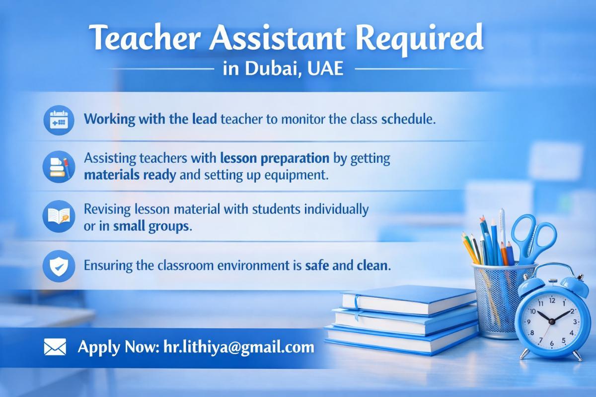 Teacher Assistant Required in Dubai