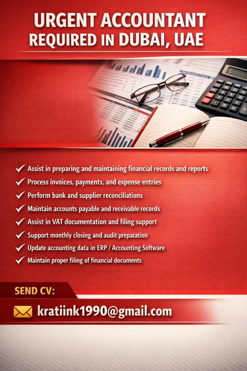 We are hiring Assistant Accountant who will support the finance team through a third-party hiring arrangement. The candidate will assist in daily accounting operations, maintain accurate financial records, and ensure compliance with company policies and UAE regulations.