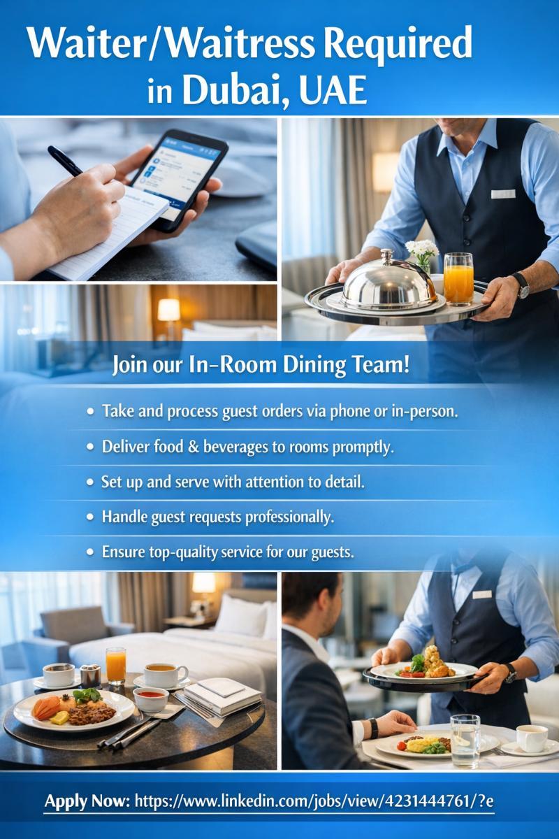 Waiter/Waitress Required in Dubai - Dubai